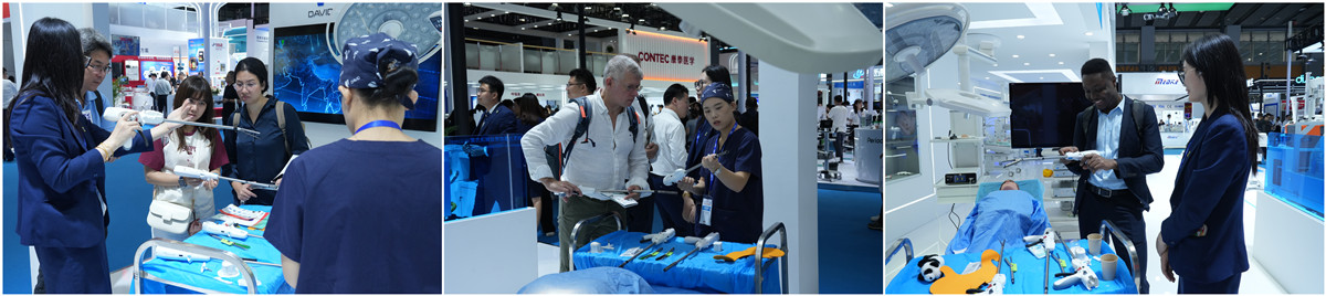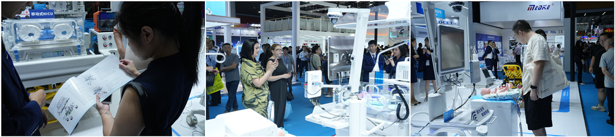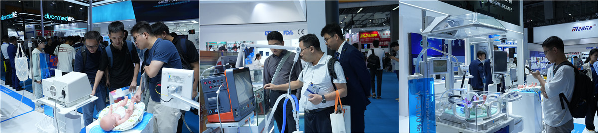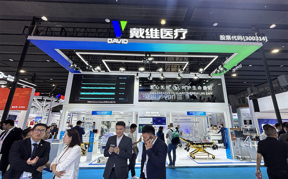 本次展會,戴維醫療以“數智賦能,聚勢拓行”為主題,帶來7大產品展區、5大解決方案等創新成果。展臺設計上采用象征生命與活力的藍綠色光帶環繞的形式,與“愛心無限,呵護生命最初”的理念相呼應,在一在一眾展位中呈現出新生命般的獨特視覺體驗。