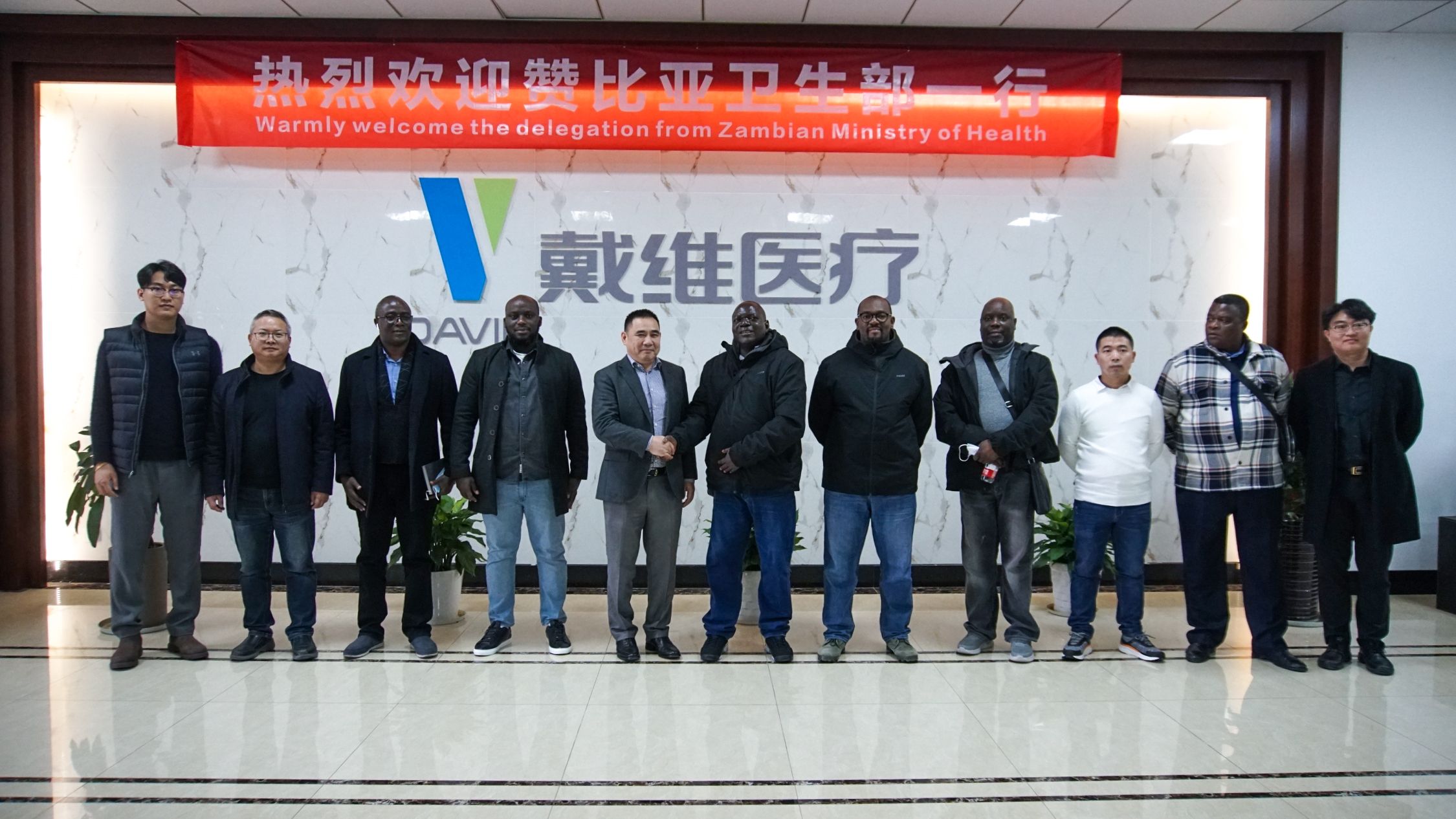 本次贊比亞代表團一行到訪,使雙方更深入地了解彼此,促進中贊雙方在醫療衛生方面的友好交流,戴維醫療團隊親切的接待贏得了代表團一行的信任。未來,戴維醫療將繼續堅持“創新領先、保質求量、勤儉創業、和諧發展”的經營理念,實現品牌強國,積極促進中非合作,為國際醫療衛生事業發展貢獻力量!